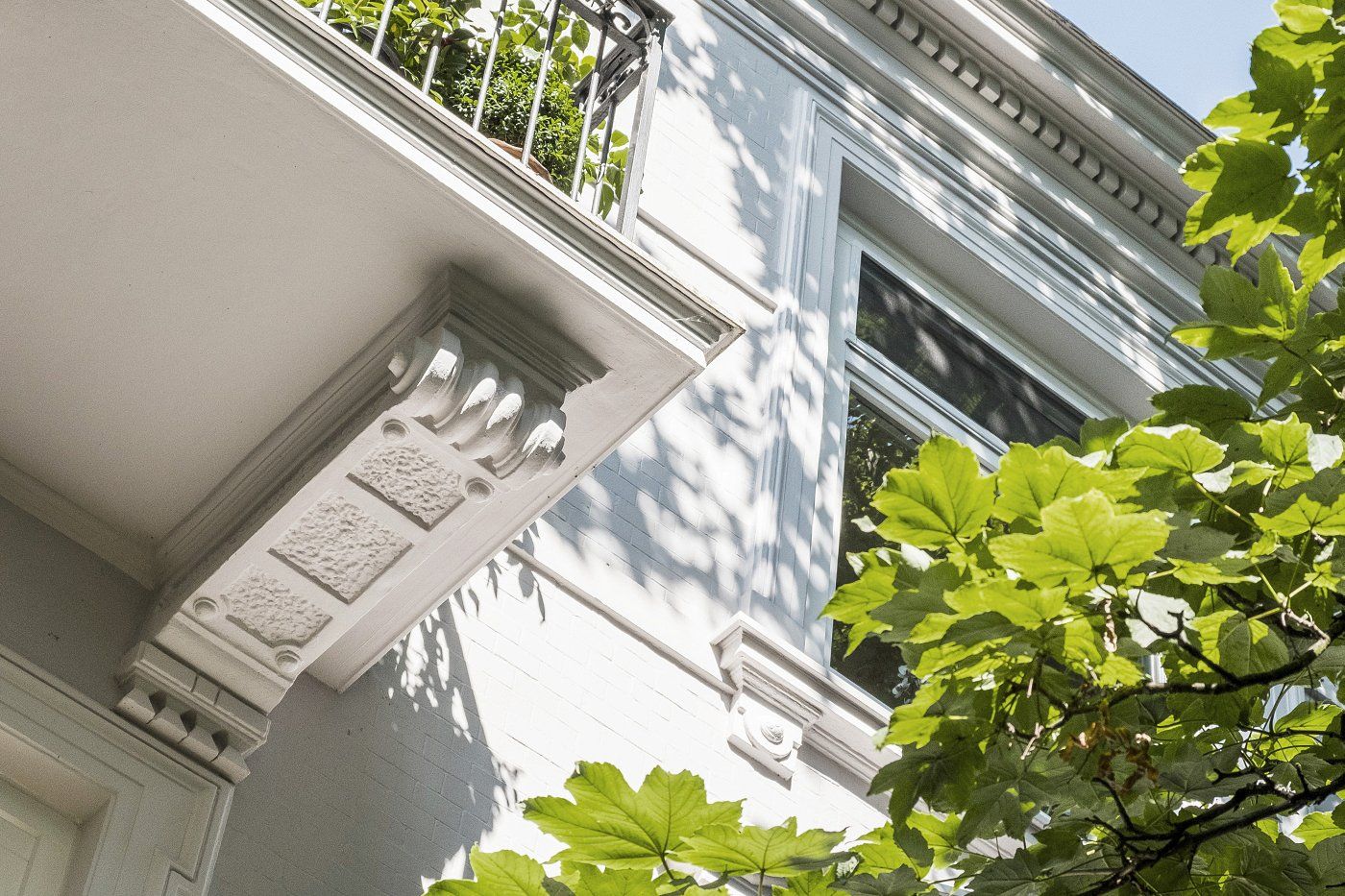 Das kleine Ensemble von 1907 besteht aus zwei Wohnhäusern - einem Vorderhaus entlang der Straße und einem Hinterhaus im Innenhof – mit insgesamt 15 Wohneinheiten. Im Laufe der Jahre wurden beide Häuser nach und nach liebevoll saniert. Die gründerzeitlichen Elemente der Fassaden, Balkone und Treppenhäuser wurden möglichst erhalten und aufwendig aufgearbeitet. Im Zuge der Sanierungsarbeiten mussten die erdgeschossigen Wohnungen kernsaniert und gegen aufsteigende Feuchtigkeit geschützt werden. Die Außenanlagen und der Innenhof wurden gärtnerisch angelegt und zu einer grünen Oase inmitten der Großstadt umgestaltet.
