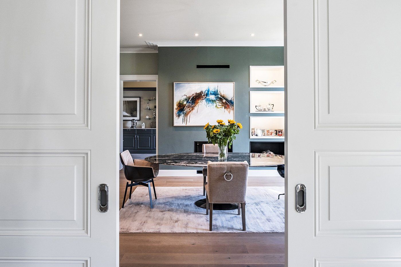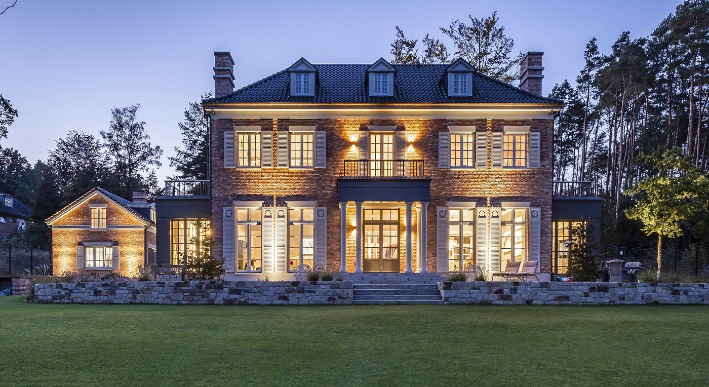 Auf einem ehemals verwilderten Grundstück wurde ein bestehendes Einfamilienhaus aus den 60er-Jahren abgerissen und durch ein Gebäudeensemble, bestehend aus einem Wohnhaus und einem Garagenhaus, ersetzt. Ein zeitlos repräsentativer Charakter und viel Licht in den Innenräumen lagen den Bauherren besonders am Herzen. Die bestehende Geländetopografie und die Vegetation haben die Gebäudeanordnung und das Entwurfskonzept maßgeblich beeinflusst. Hochwertige Detaillösungen und aufwendig verarbeitete Materialien runden das Bild des Landhauses ab, das zwar historische Elemente aufnimmt und durch natürliche Materialien den Charme eines alten Gebäudes aufnimmt, aber trotzdem als Neubau erkennbar bleibt.