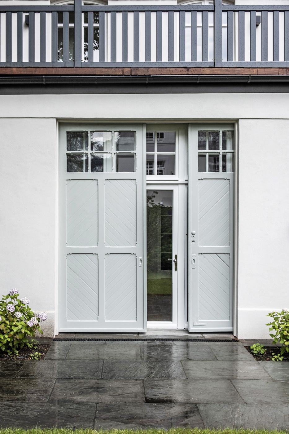 Die denkmalgeschützte Remise im rückwärtigen Grundstücksbereich, errichtet bereits 1903, gehörte früher zum gründerzeitlichen Wohnhaus auf dem Nachbargrundstück und beherbergte eine Kutscherwohnung, einen geschlossenen Stellplatz für eine Kutsche sowie einen Pferdestall mit mehreren Pferdeboxen. Das frühere Nebengebäude wurde zunächst neu gegründet, da es aufgrund fehlender Fundamente bereits massive Risse aufwies und einzustürzen drohte. Anschließend wurde die Remise mit erheblichem Aufwand denkmalgerecht saniert und zu einem Wohnhaus umgestaltet. Spuren der früheren Nutzung als Stallgebäude wurden dabei erhalten und in die Gestaltung der Innenräume integriert. Der historische Charakter sowie die vielen noch vorhandenen Stilelemente aus der Bauzeit wie die Boxentrennwände, die Futtertröge und die alte Stalltür wurden erhalten, ergänzt und mit viel Liebe zum Detail aufgearbeitet.