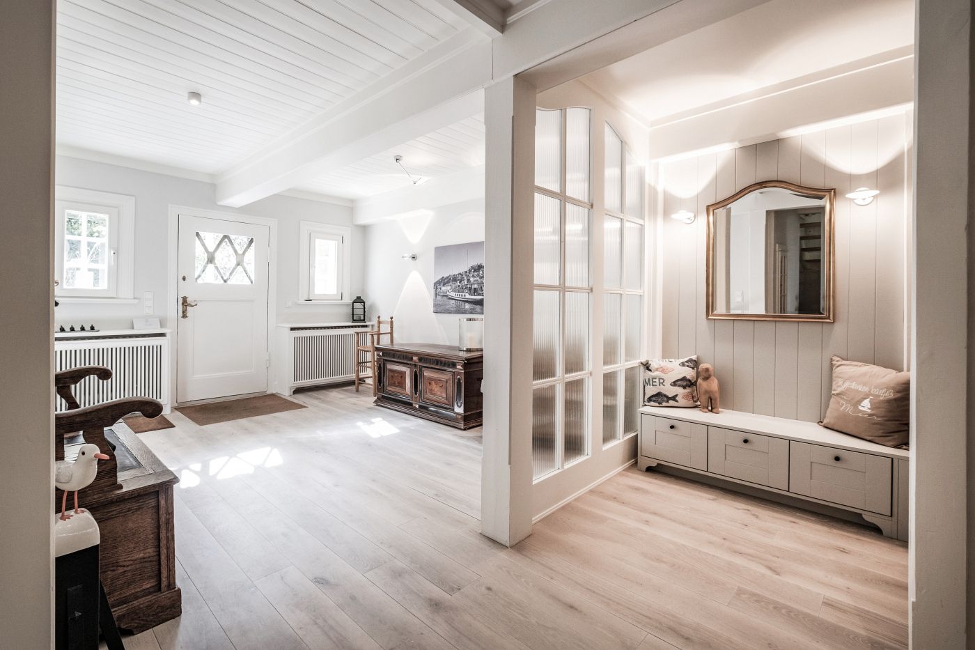 Die im 18. Jh. errichtete, denkmalgeschützte Tweehus-Hälfte wurde im Zeitraum 2022/2023 aufwendig saniert. Die gesamte Haustechnik und die Einbauten in Bad und Küche entsprachen nicht mehr dem Stand der Technik und wurden erneuert. Der Kellerbereich und die nicht unterkellerten Bereiche im Erdgeschoss mussten gegen aufsteigende Feuchtigkeit geschützt und neu abgedichtet werden. Im Inneren wurden die Räume behutsam heutigen Wohnansprüchen angepasst. Dafür wurde zwischen Küche und Essbereich ein Durchbruch hergestellt sowie nicht bauzeitliche Trennwände entfernt, um eine großzügige Küche realisieren zu können. Der historische Charakter sowie die vielen noch vorhandenen Stilelemente aus über zwei Jahrhunderten wie beispielsweise die Klöntür, die Fensterklappläden, die Dielen im Dachgeschoss, das alte Fachwerk zum Garten sowie die originale Verblendfassade wurden erhalten, ergänzt und mit viel Liebe zum Detail aufgearbeitet.
